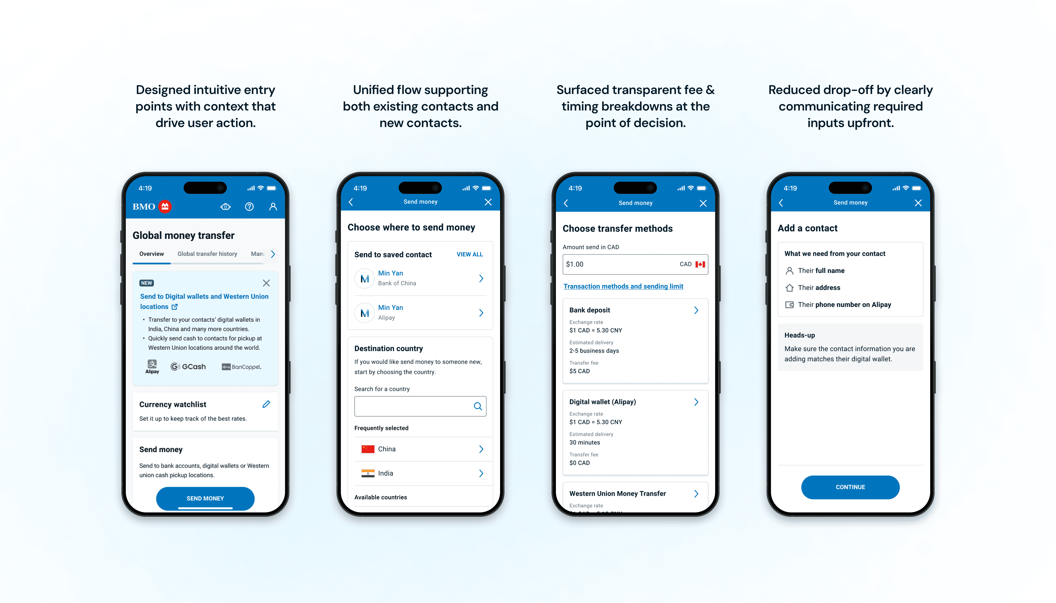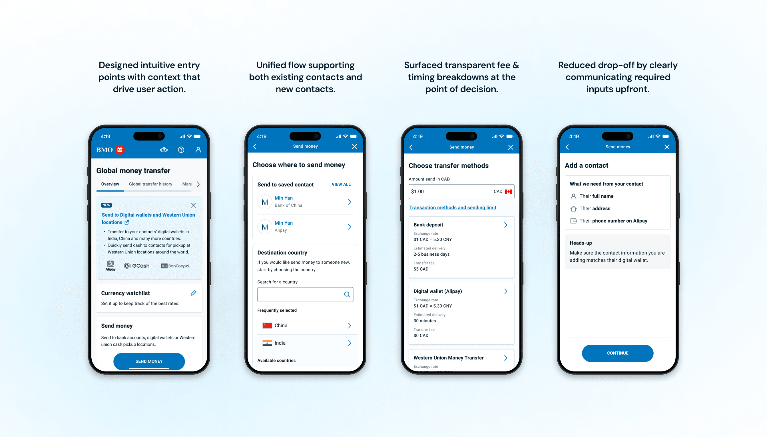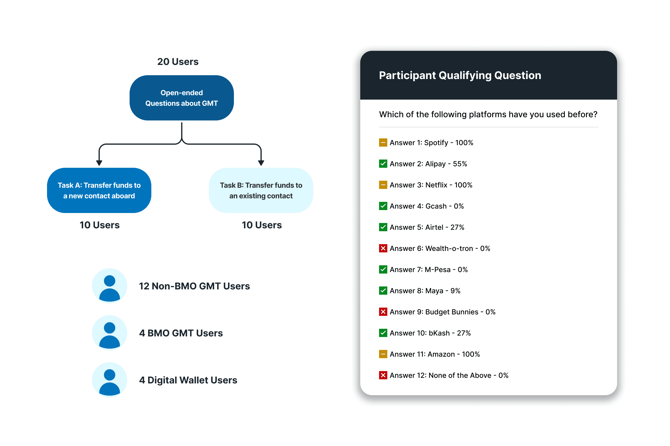 I shaped the research direction through targeted participant recruitment based on domain knowledge built throughout the project, unlocking richer insights on the digital wallet flow. Results validated the design, generated data to push back on stakeholder pressure, and uncovered findings that informed MVP prioritization.