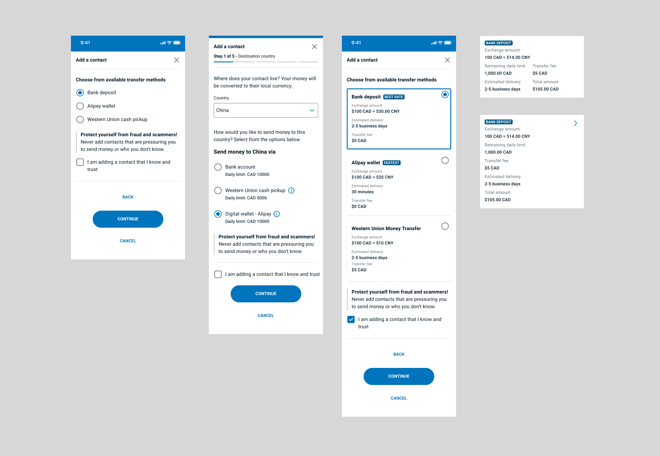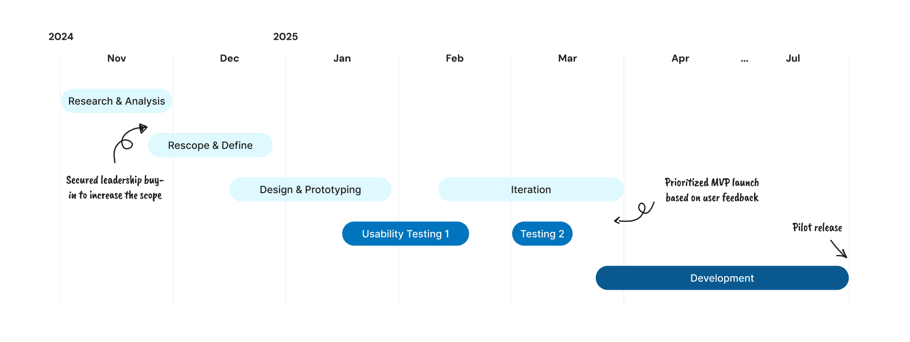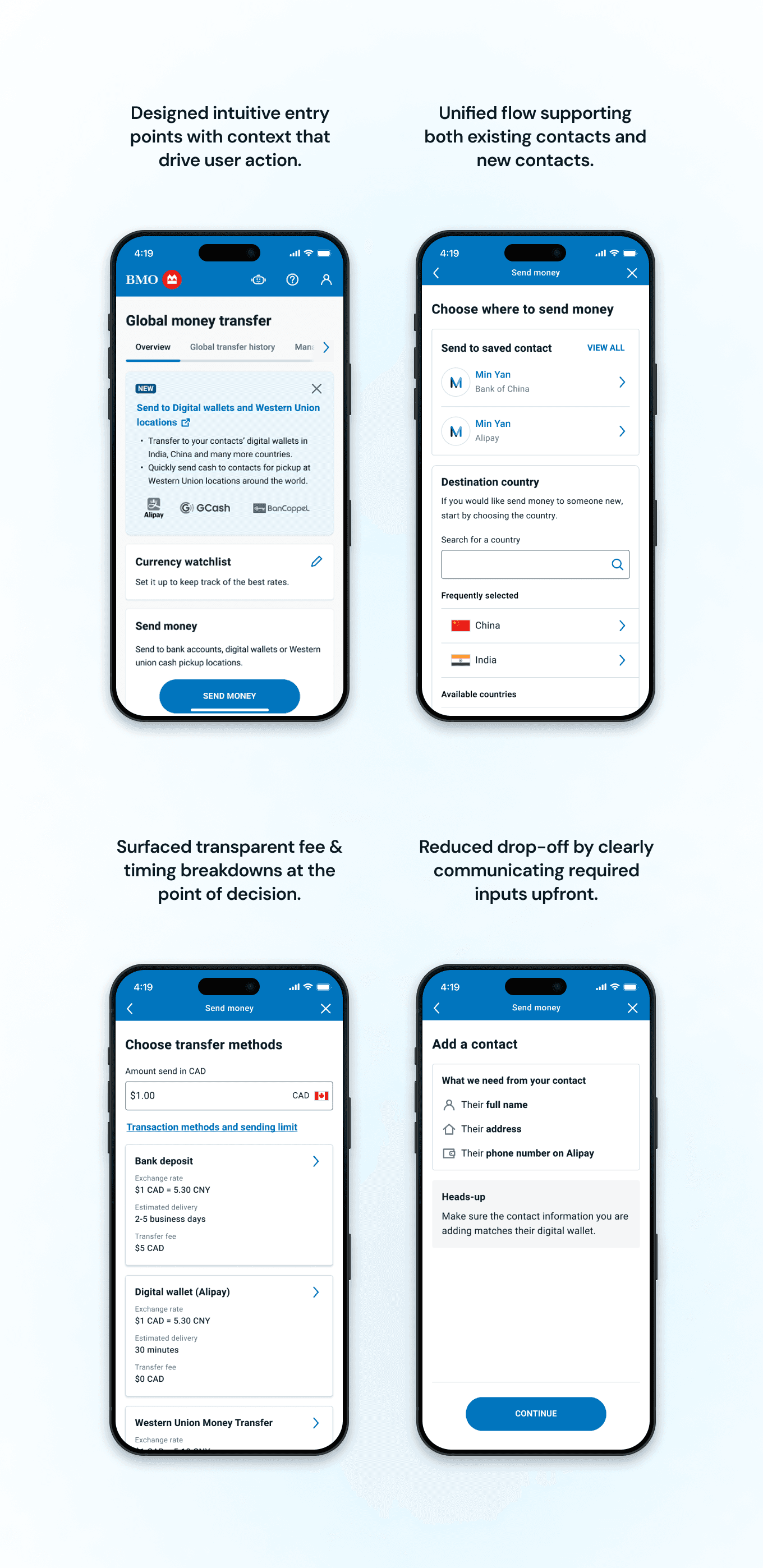 I shaped the research direction through targeted participant recruitment based on domain knowledge built throughout the project, unlocking richer insights on the digital wallet flow. Results validated the design, generated data to push back on stakeholder pressure, and uncovered findings that informed MVP prioritization.